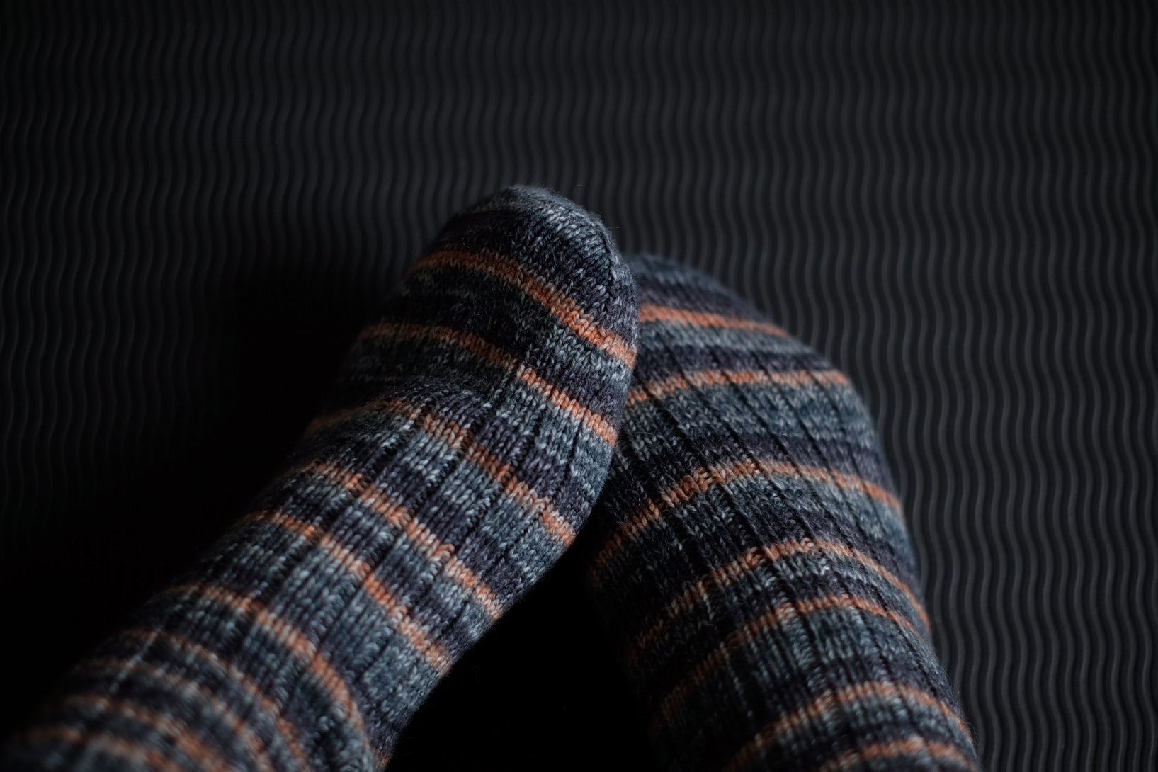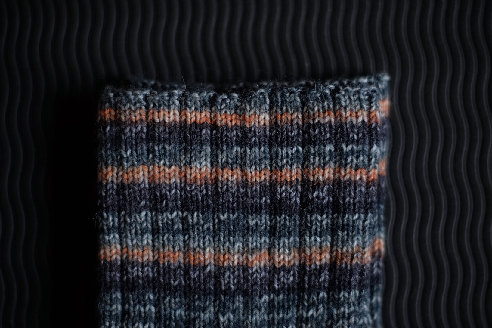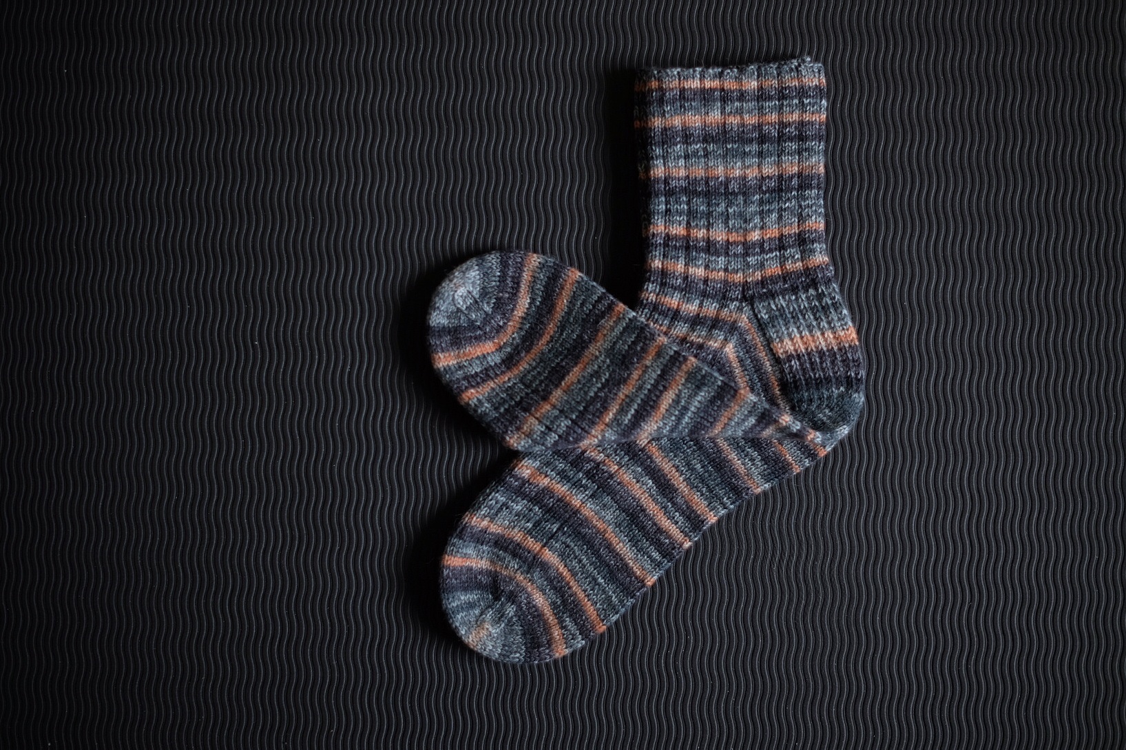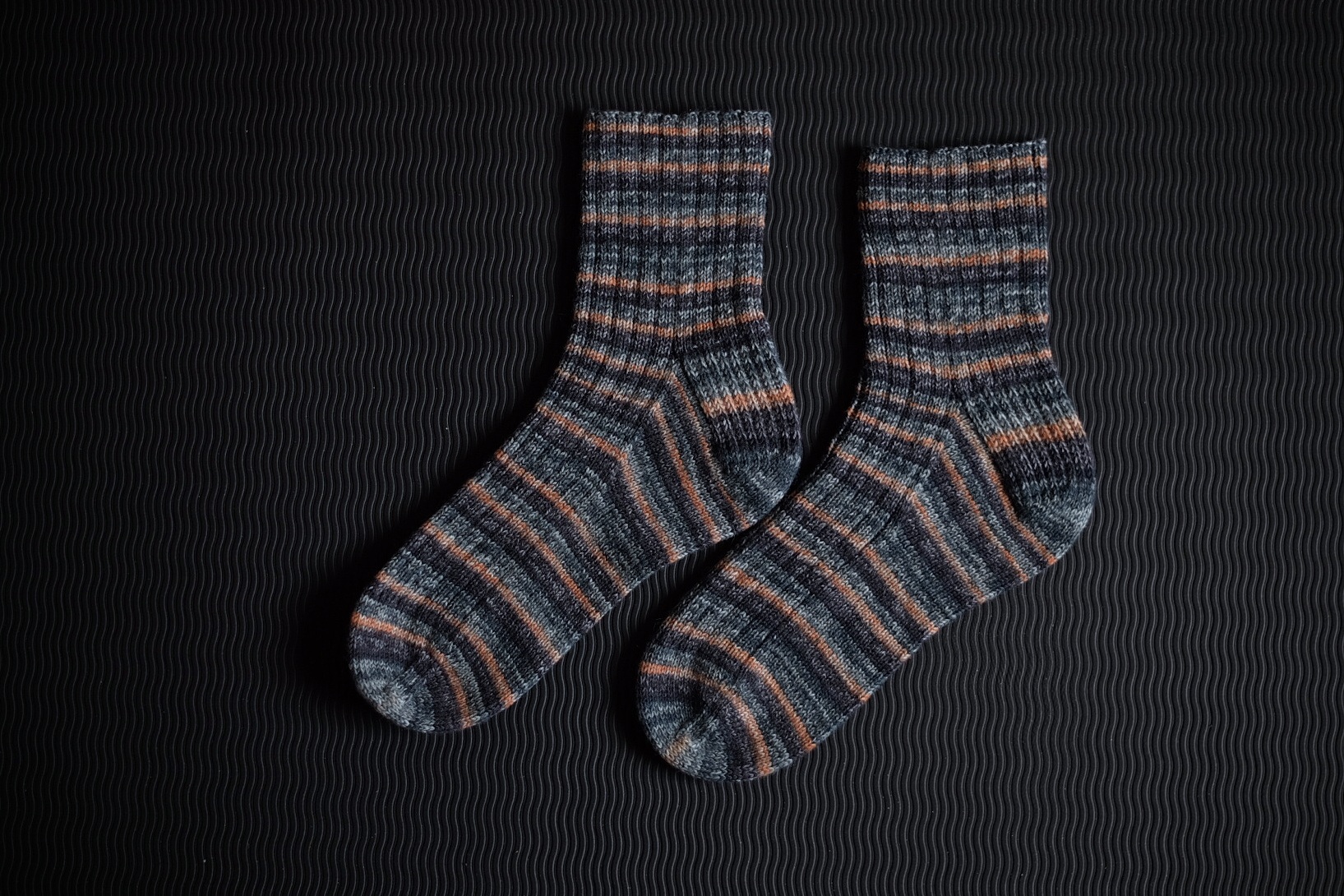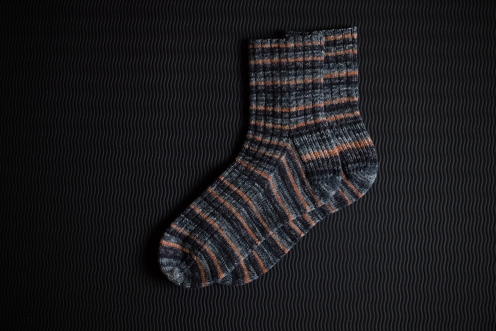 • With a keen eye for aesthetics, I've designed these socks to be a visual treat. Stripes in varying shades of gray complement the subdued orange, creating a look that's both classic and contemporary.